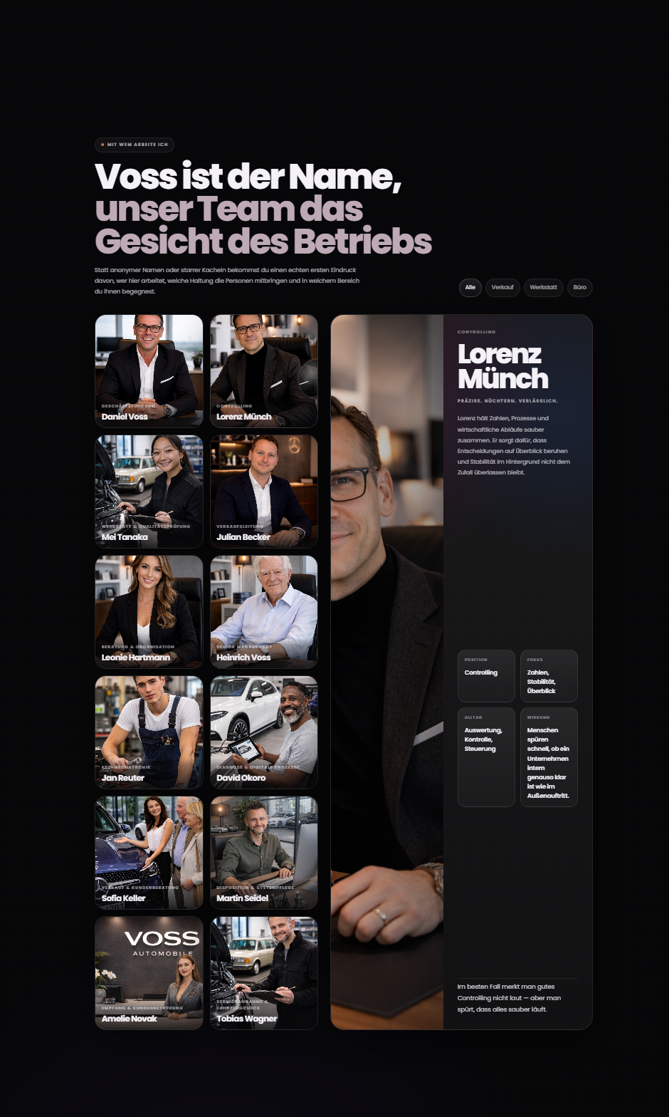 Nicht als Fachurteil und nicht aus Designersicht, sondern ganz direkt beim Scrollen. Eine gute Seite erklärt sich nicht über Schlagworte. Sie fühlt sich von Anfang an geordnet, hochwertig und selbstverständlich an. Genau daraus entsteht das Gefühl, dass hier sauber gearbeitet wird.
